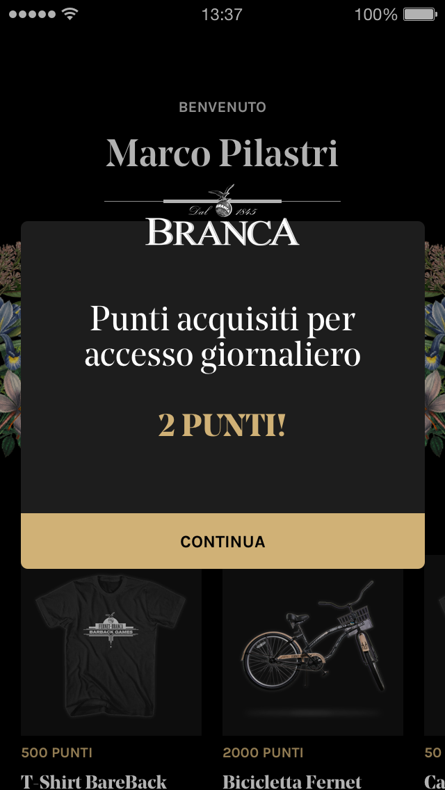 You can earn points by participating in events organized directly by Fernet Branca, or by logging in daily.