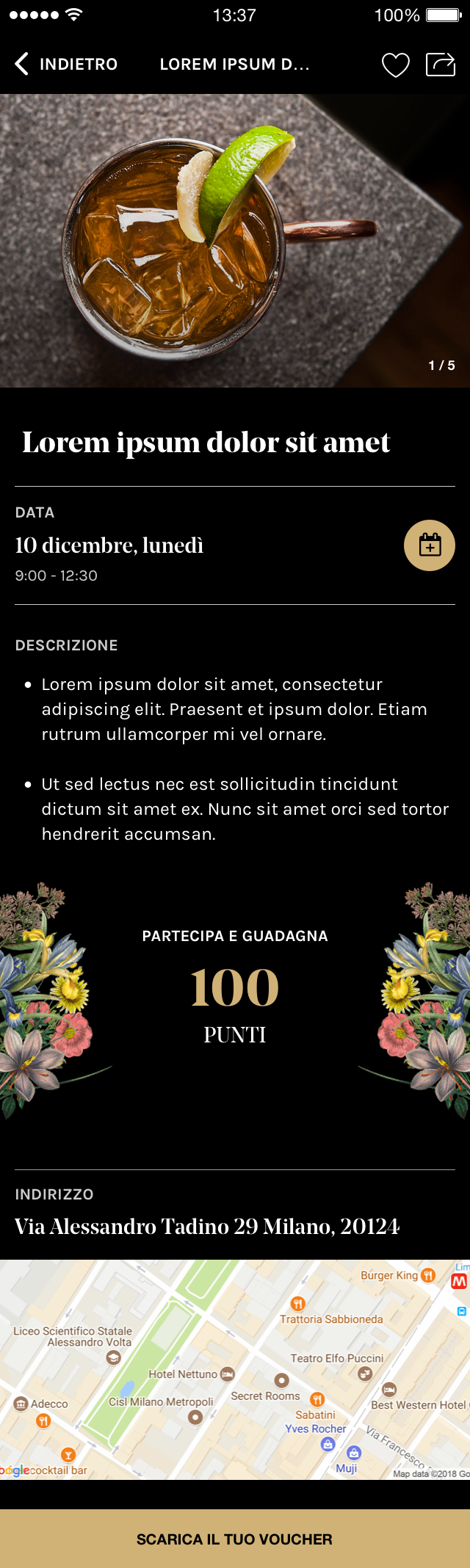 The focal point of this app is to create a kind of loyalty with the customer by earning points by participating in the events, making daily access to the app and sharing content in the app.