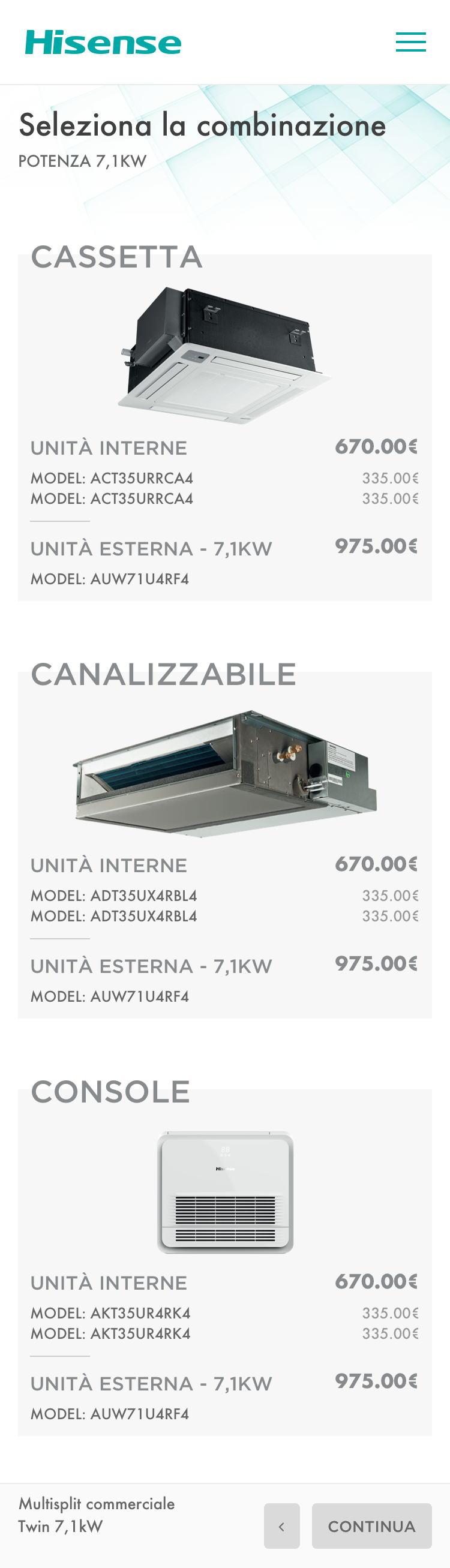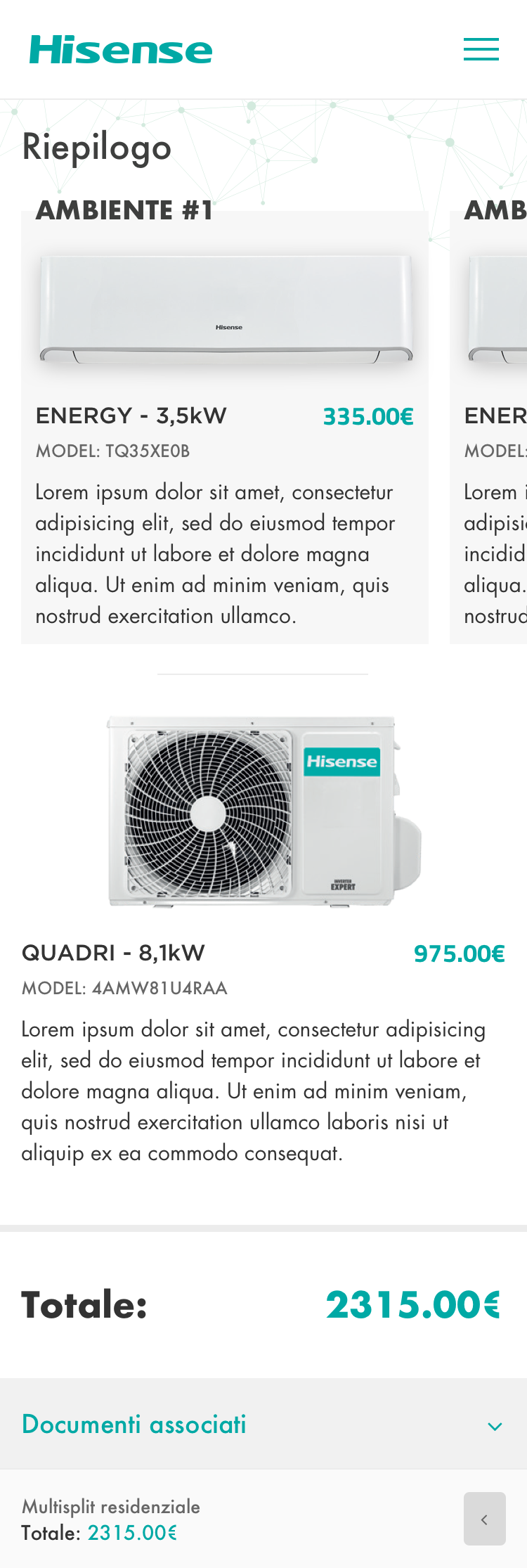 The Web App for Hisense has been designed for sellers, in order to allow them to illustrate to the customer various possible real-time configurations of all the environments and have a summary with the prices related to the configuration made.