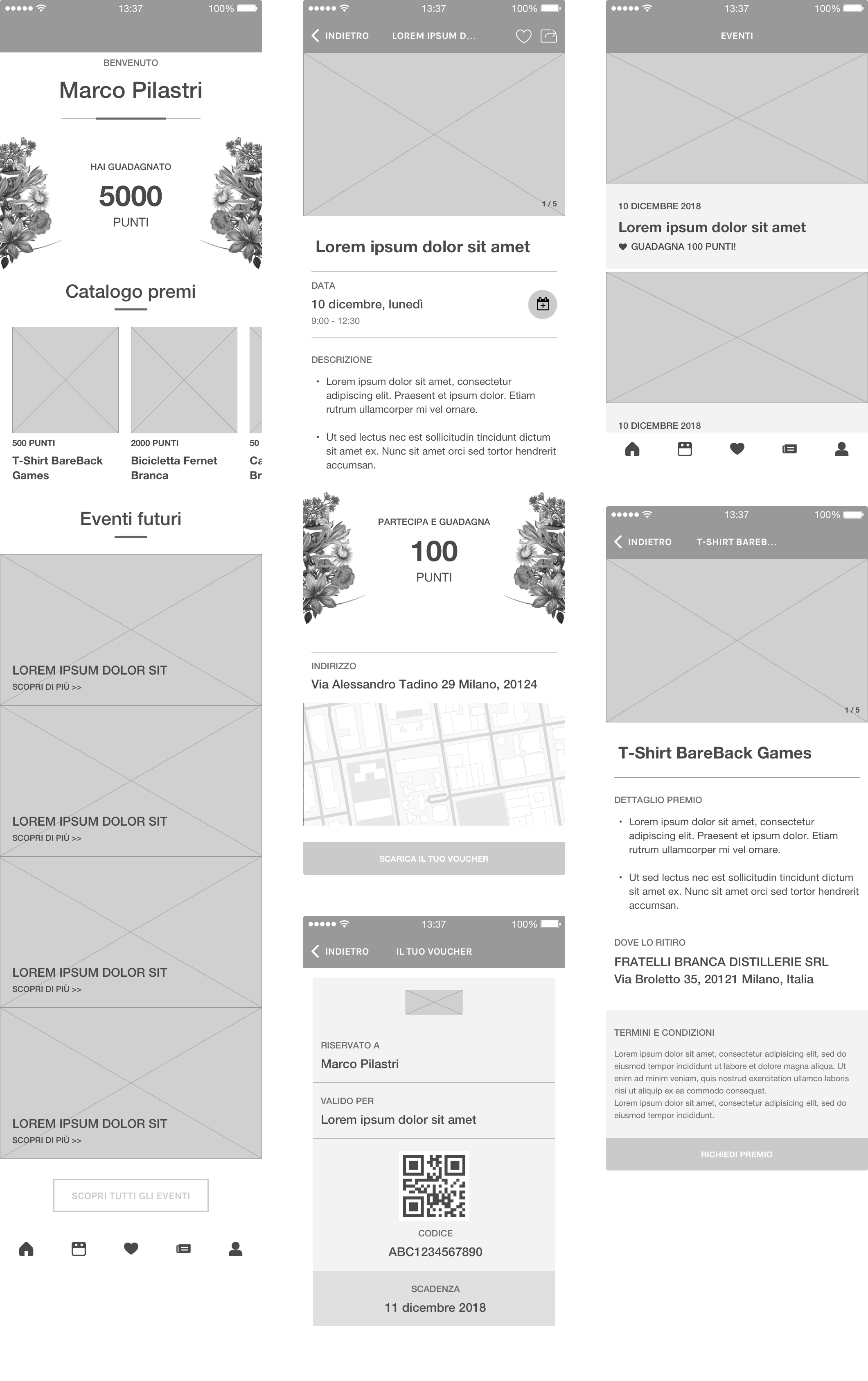 The focal point of this app is to create a kind of loyalty with the customer by earning points by participating in the events, making daily access to the app and sharing content in the app.