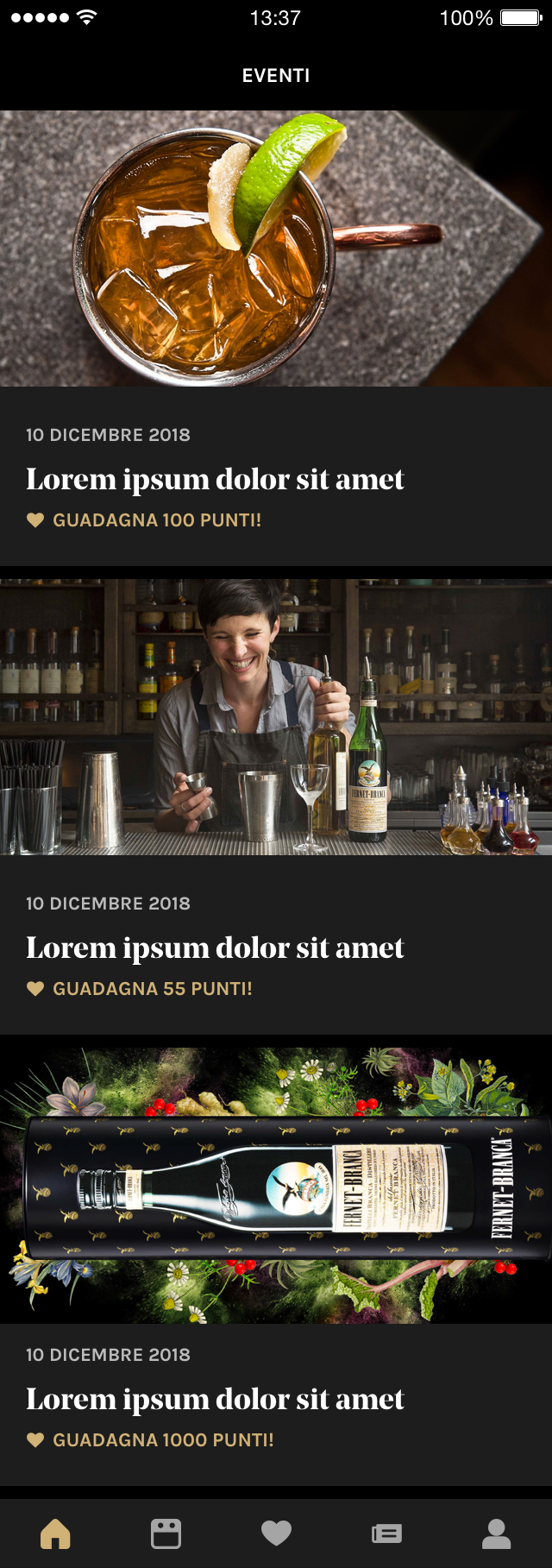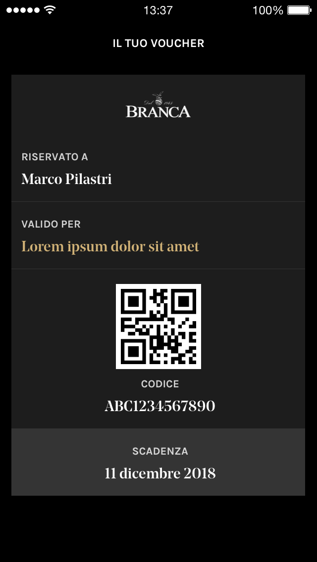 Access to the application is possible only through cards with a Qr-Code provided by Fernet to its selected customers. Once the Qr-Code has been scanned, it will be possible to register and participate in the exclusive events organized directly by Fernet Branca.