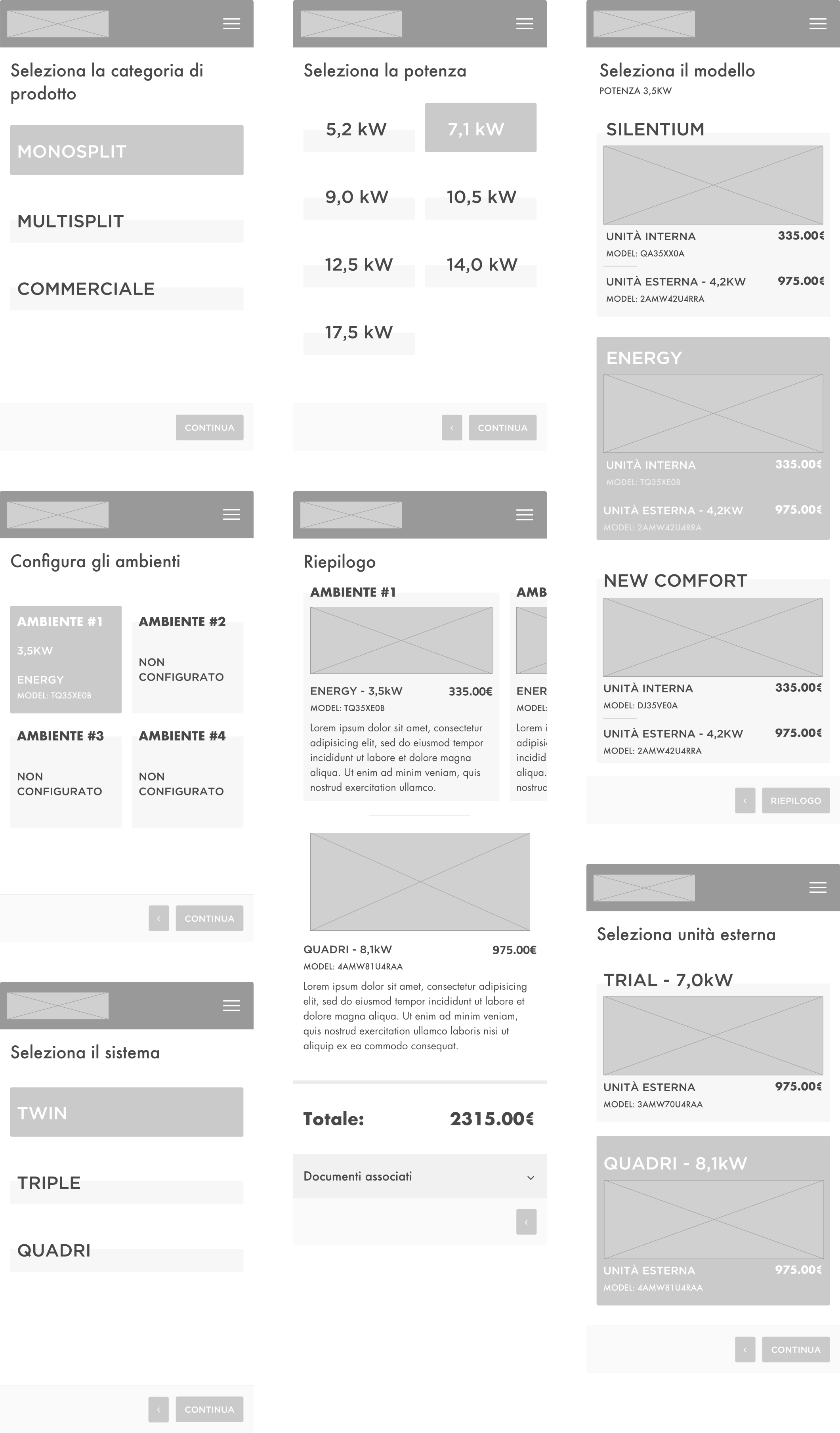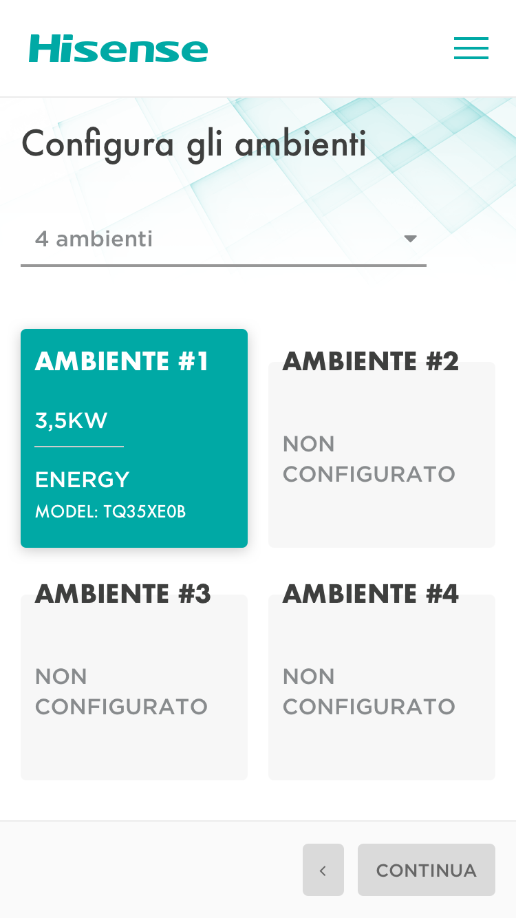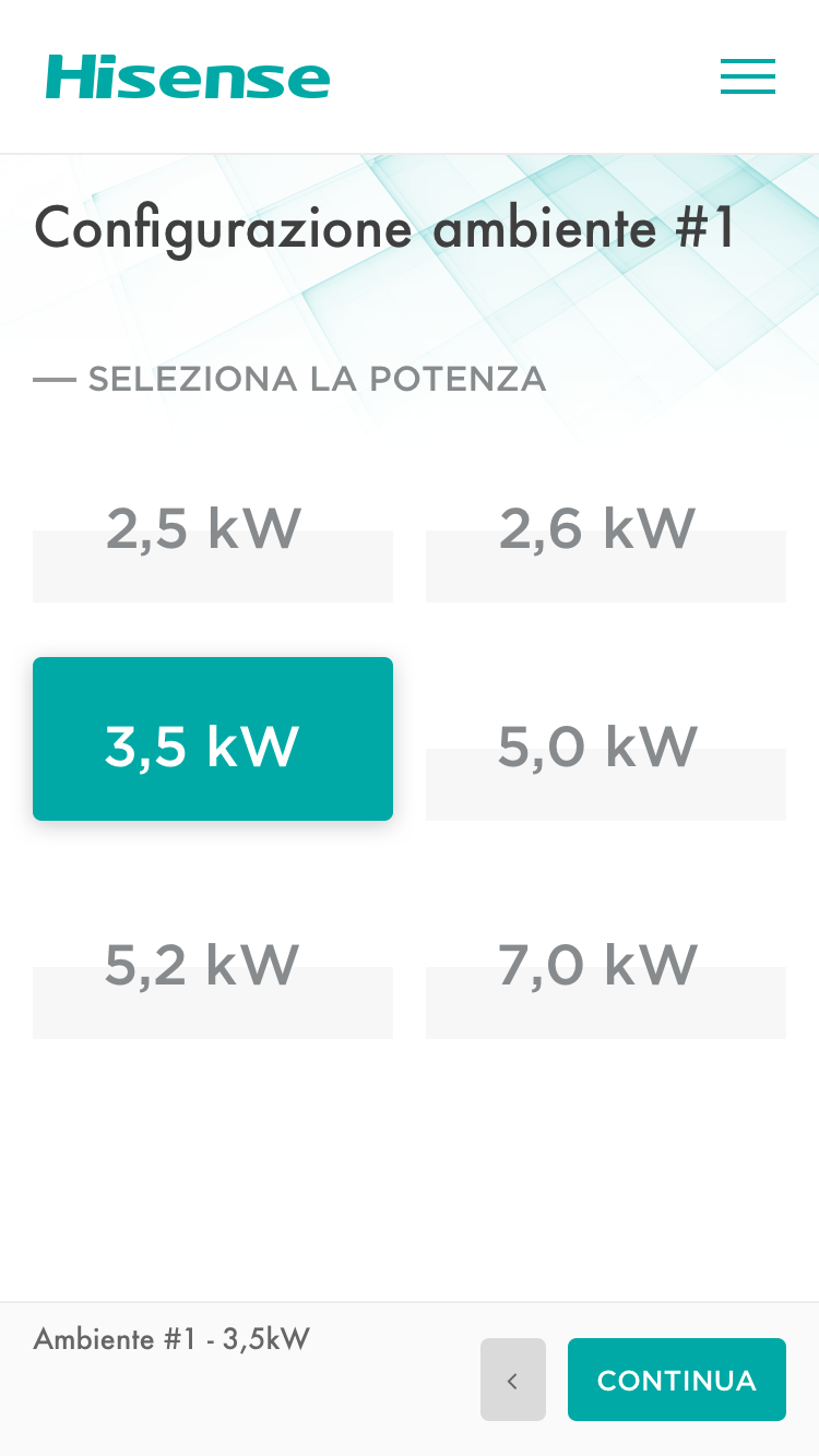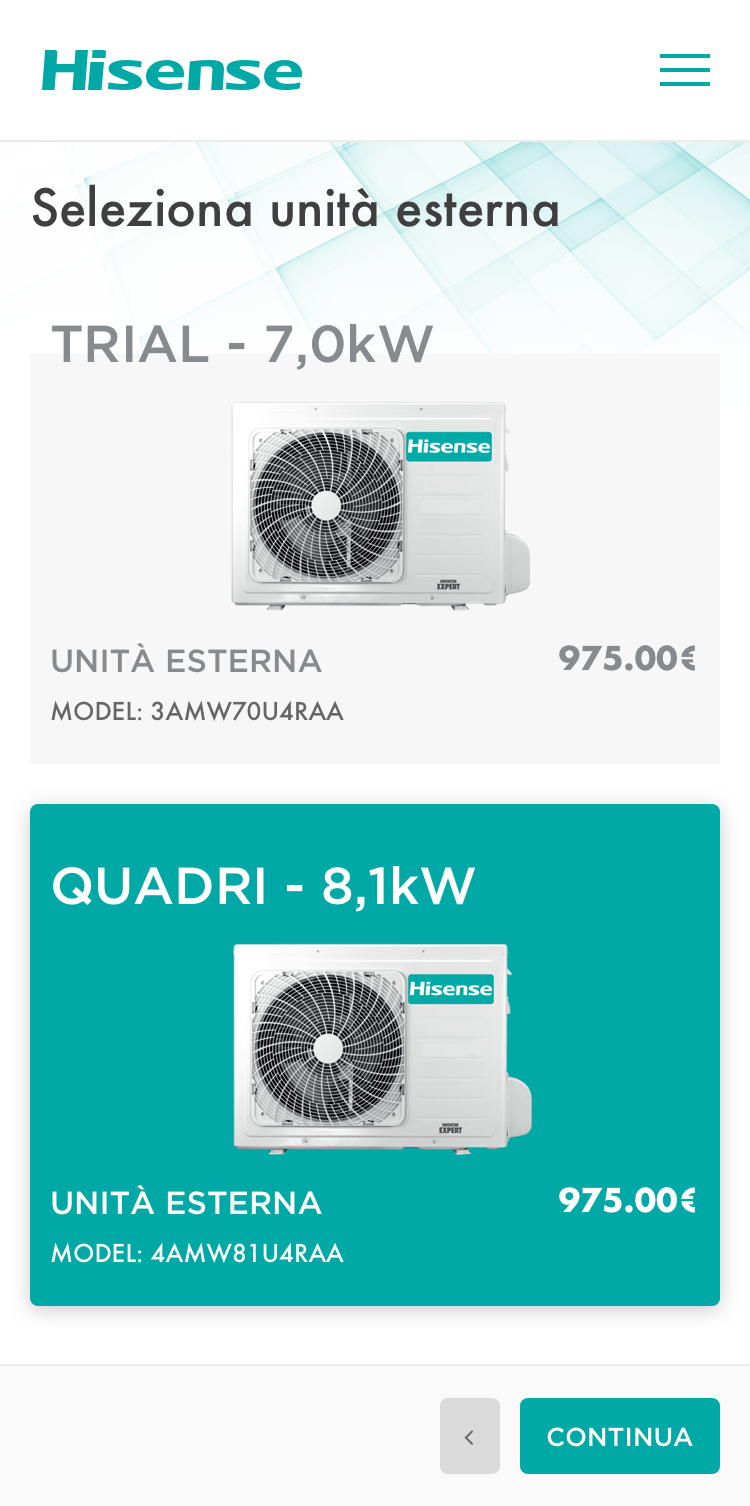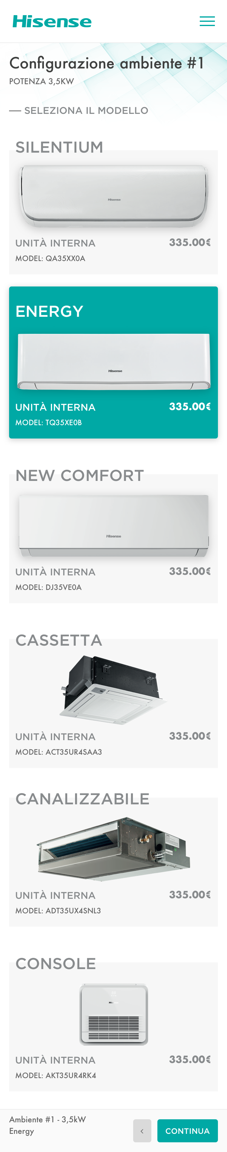 The Web App for Hisense has been designed for sellers, in order to allow them to illustrate to the customer various possible real-time configurations of all the environments and have a summary with the prices related to the configuration made.
